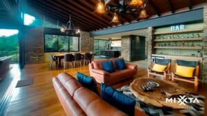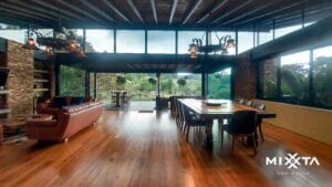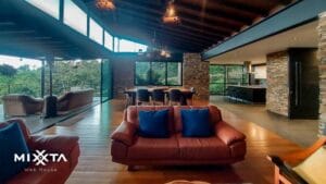 Casa de arquitectura moderna a tan solo 5 minutos del casco urbano del Retiro en la vereda Pantanillo. Está ubicada en parcelación con portería 24/7, en lote independiente muy privado y sin registro.